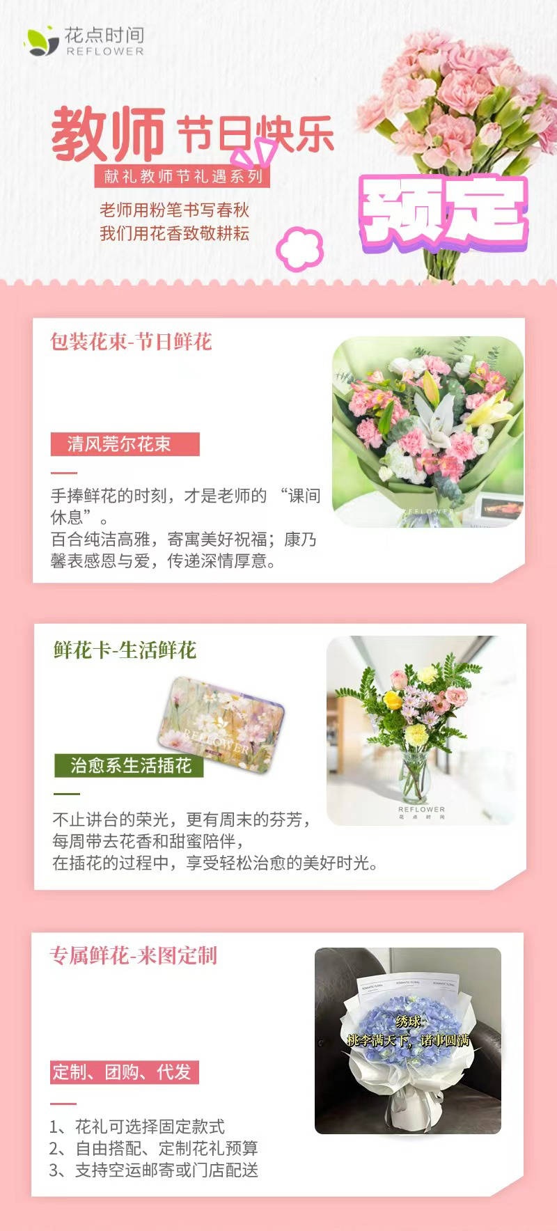 山东天之锦代理品牌花点时间鲜花卡,把对老师的心意,放进一束束美丽的鲜花中。